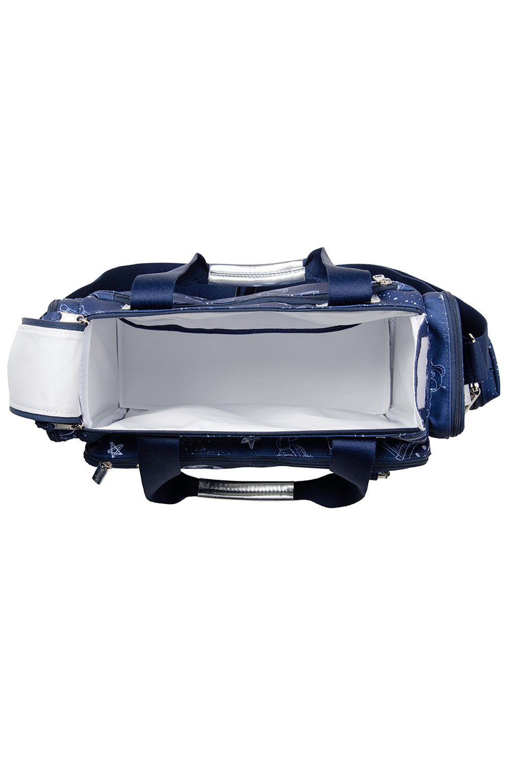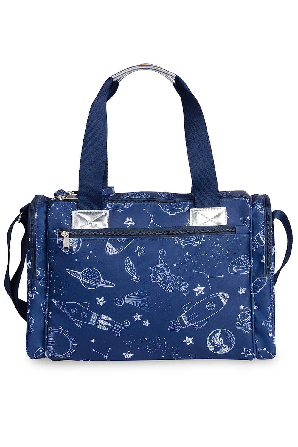 A Bolsa Anne da coleção Astronauta é perfeita para os passeios longos com o seu pequeno. Feita em tecido DuoTex resistente, oferece durabilidade e praticidade. Seu interior espaçoso comporta trocas de roupas, fraldas, itens de higiene, uma manta e outros acessórios. Acompanha chaveiro no tema da coleção, trocador estampado e porta-chupeta coordenado.