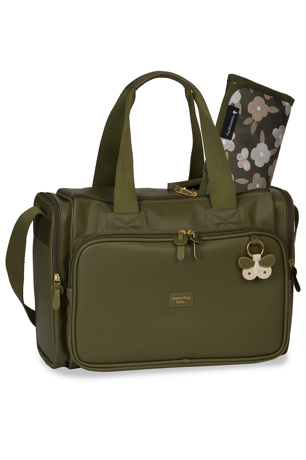 • Acompanha trocador estampado, chaveiro de borboleta, porta-chupeta, alça de mão e alça tiracolo ajustável