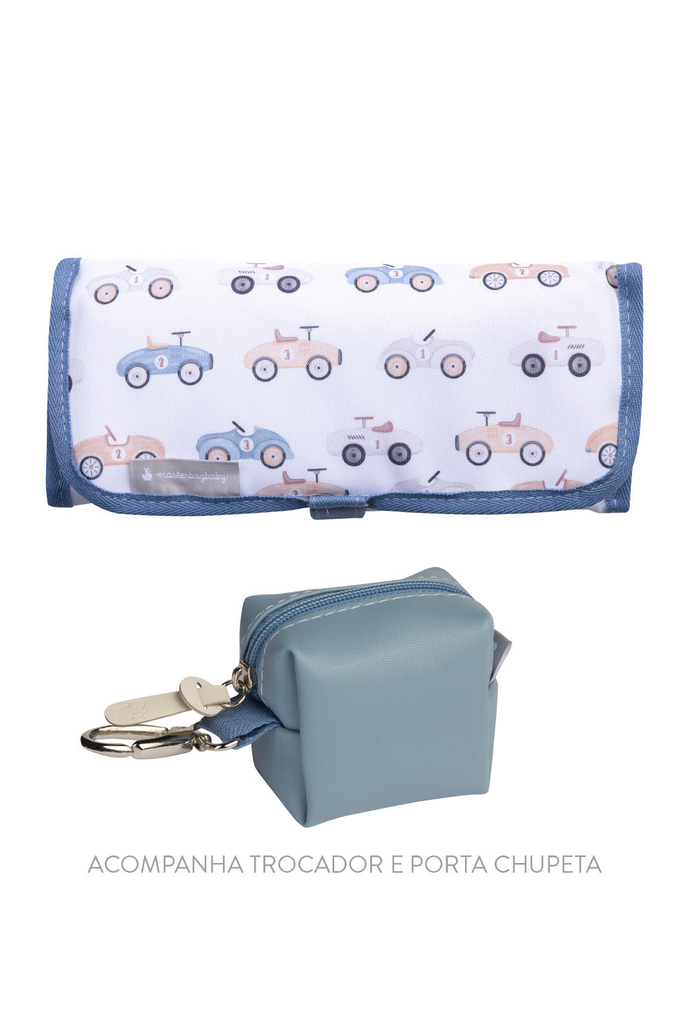 A Bolsa Anne Carrinhos é ideal para os passeios longos com seu pequeno. Produzida em Napa Soft, um material fácil de limpar e resistente que não descasca com o tempo, ela oferece espaço interno amplo para organizar trocas de roupa, fraldas, mantas e itens de higiene. Os bolsos laterais térmicos são ideais para manter mamadeiras ou garrafinhas fresquinhas. Acompanha trocador estampado, chaveiro de carrinho e porta-chupeta combinando.