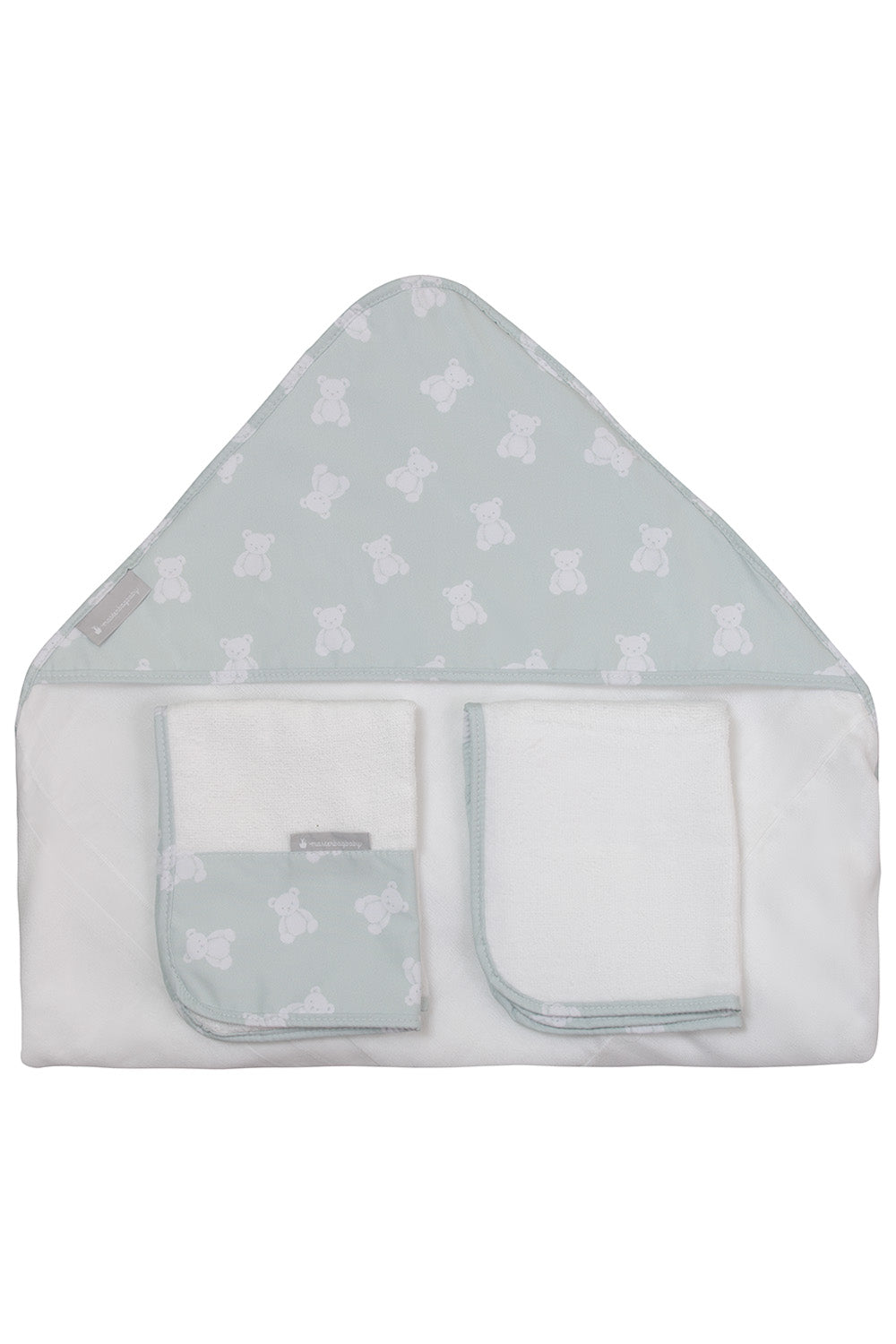 Cuidar da pele sensível dos bebês é fundamental, e a Masterbag pensou nisso ao criar uma linha especial de toalhas. O Kit Bear Xadrez traz três tipos de toalhas: uma para o banho, outra para o rosto e uma especialmente projetada para o momento da troca de fralda. A toalha de banho é feita com um tecido macio e absorvente de algodão puro, proporcionando uma secagem prática e confortável para o bebê. A toalha de rosto é perfeita para limpar a boquinha após a alimentação ou para enxugar delicadamente o rostinho. Já a terceira toalha, para a troca de fralda, oferece suavidade e conforto. As toalhas Masterbag são macias ao toque e proporcionam um cuidado extra para a pele delicada do seu bebê, tudo isso com o encanto da coleção Bear Xadrez na cor Menta.