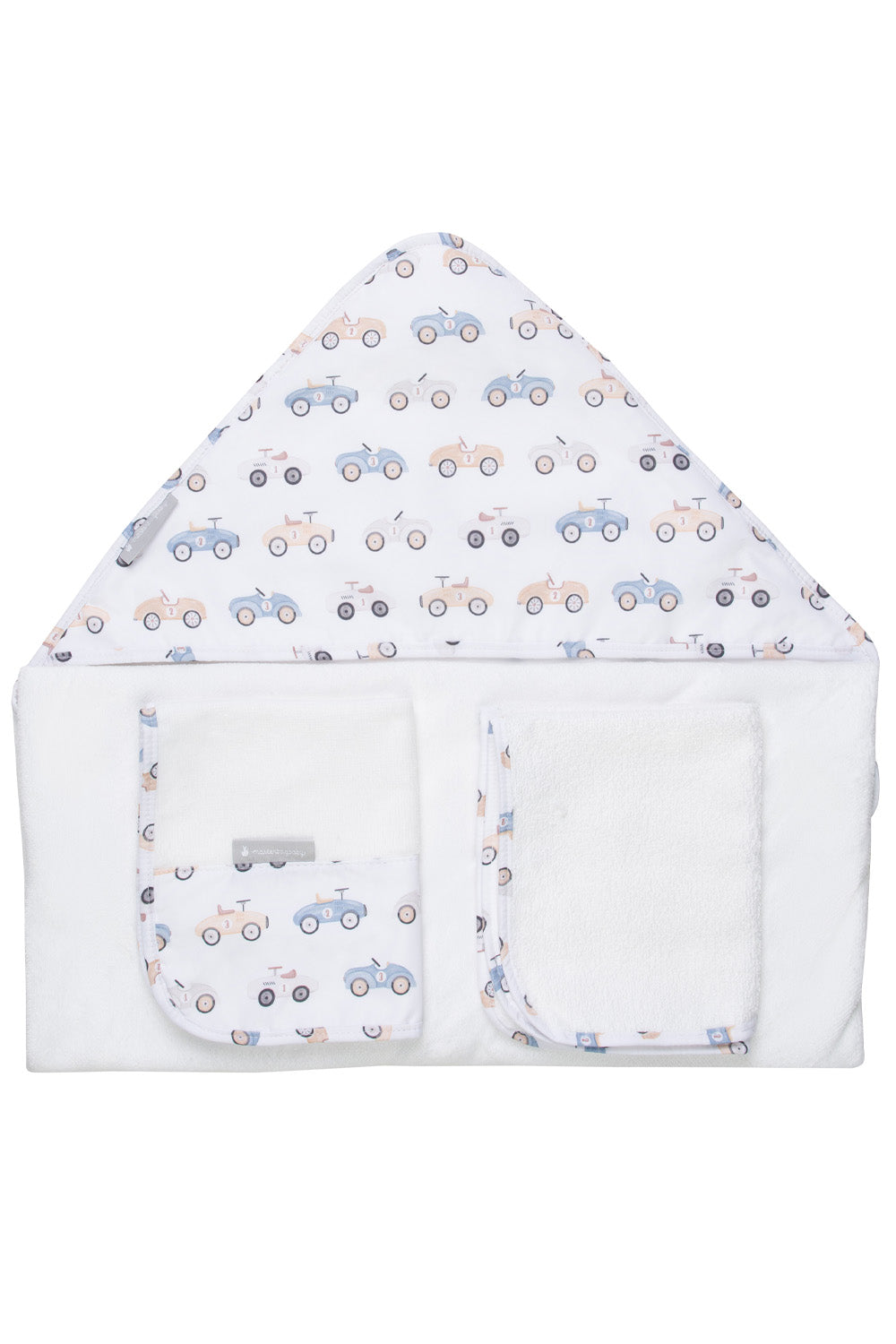 Cuidar da pele delicada dos bebês é essencial, e a Masterbag pensou nisso ao desenvolver uma linha de toalhas especiais. O conjunto Carrinhos traz três tipos de toalhas: uma para o banho, outra para o rosto e uma especialmente desenhada para o bumbum. A toalha de banho é revestida com um suave tecido de algodão 100%, tornando a hora de secar muito prática e confortável. A toalha de rosto é perfeita para secar a boquinha após tomar leite, sucos ou escovar os dentinhos. E a terceira toalha, para o bumbum, é excelente para os momentos de trocar a fralda. Essas toalhas Masterbag são delicadas e proporcionam um cuidado extra para a pele do seu bebê, tudo isso com o encantamento da coleção Carrinhos com estampa desenvolvida em aquarela.