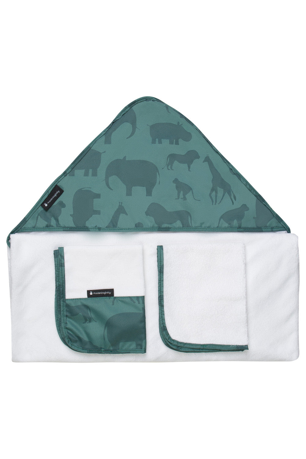A suavidade e maciez da toalha Safari Masterbag são exatamente o que a pele do seu pequeno(a) precisa. Com isso em mente, a Masterbag desenvolveu um Kit de Toalhas confortáveis e de alta qualidade para os pequenos. A toalha de banho é costurada junto à toalha fralda 100% algodão, o que além de deixar o toque mais suave, torna a hora da troca mais prática para os papais e mamães de primeira viagem. O Kit completo é composto por uma toalha de banho, uma toalha de rosto e uma de bumbum, perfeita para os momentos da troca de fralda. A toalha da Coleção Safari foi desenvolvida com o capuz e viés com a estampa de animais, combinando perfeitamente com toda a linha Safari!