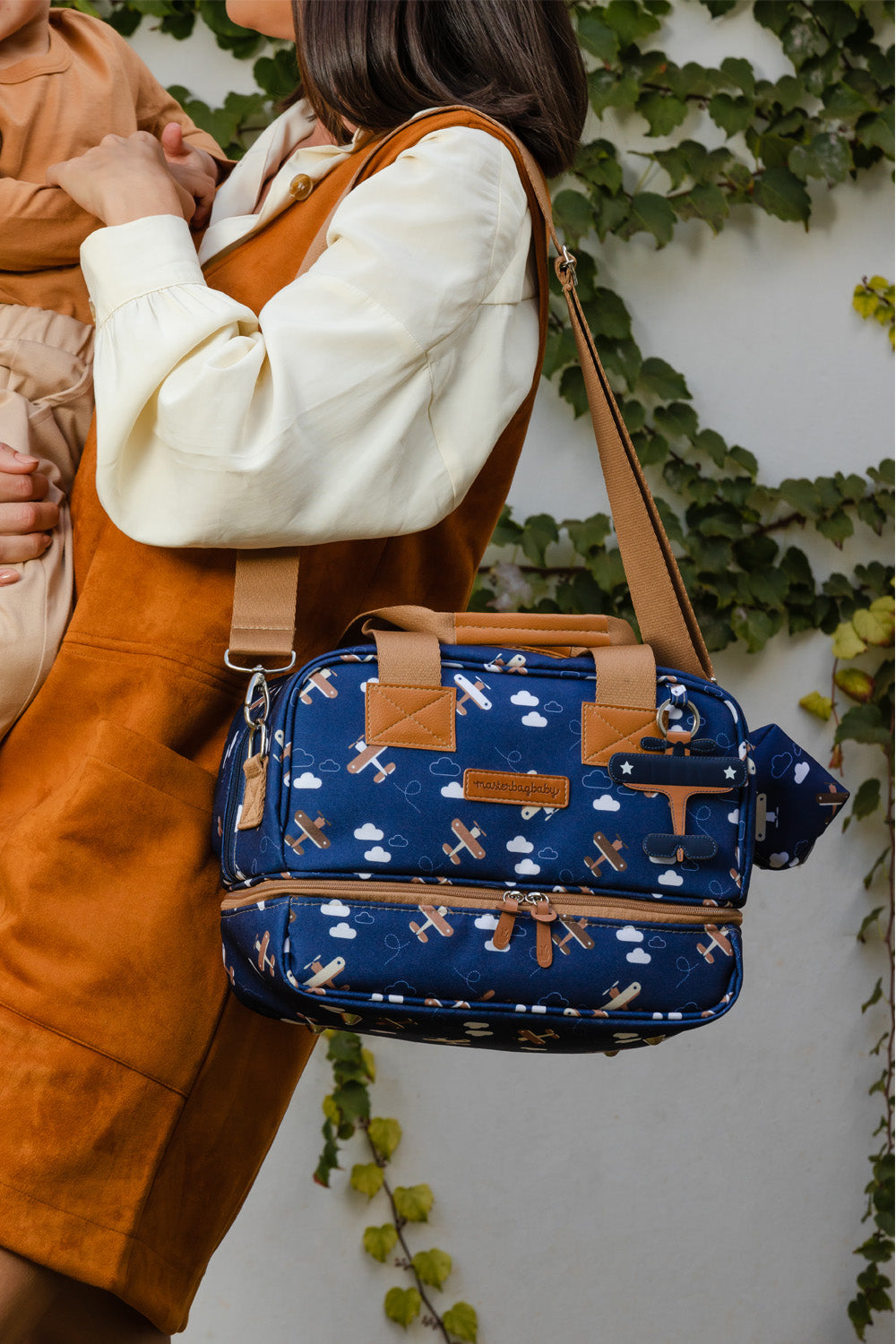 A Frasqueira Térmica Vicky, da nossa Coleção Avião, é compacta e perfeita para te acompanhar em todas as fases da vida do seu bebê. Criada para passeios curtos com bebês de 0-6 meses e também para aqueles que já iniciaram a introdução alimentar, seu design apresenta dois compartimentos: o primeiro, térmico, preserva comidinhas congeladas, suquinhos e lanchinhos frescos, enquanto o segundo é ideal para trocas de fraldas e itens de higiene. Com alça de mão, alça tiracolo e porta chupeta, suas saídas se tornarão ainda mais práticas!