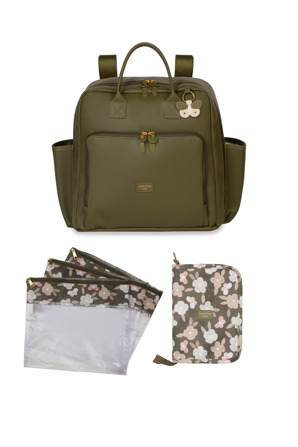 O Kit Dia a Dia Vintage Borboletas Oliva combina estilo e praticidade para o dia a dia das mamães e papais. Seja para um passeio tranquilo no shopping ou uma consulta médica, ele mantém tudo organizado.