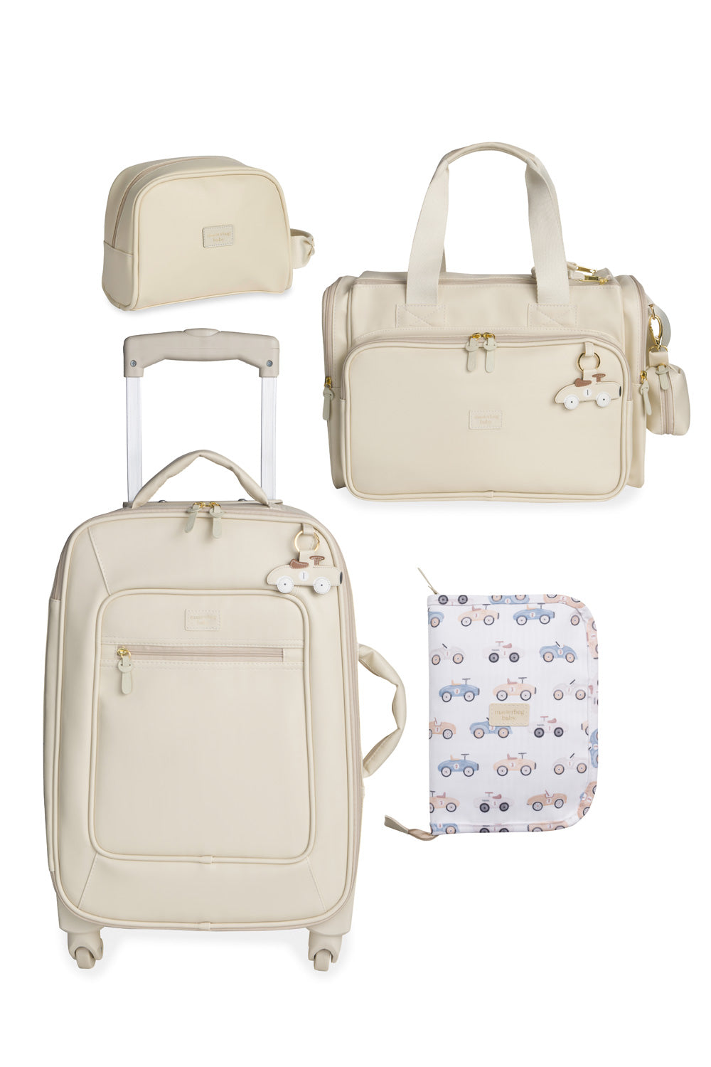 O Kit de Maternidade é a solução ideal para organizar a chegada do bebê com charme e praticidade, incluindo uma mala de rodinhas para levar os conjuntos de roupinhas, uma bolsa Anne para guardar itens essenciais, um porta-carteira de vacinação para organizar os documentos do bebê e uma nécessaire Baby para itens de higiene, com design delicado e funcional, garantindo que você tenha tudo o que precisa com estilo e organização.