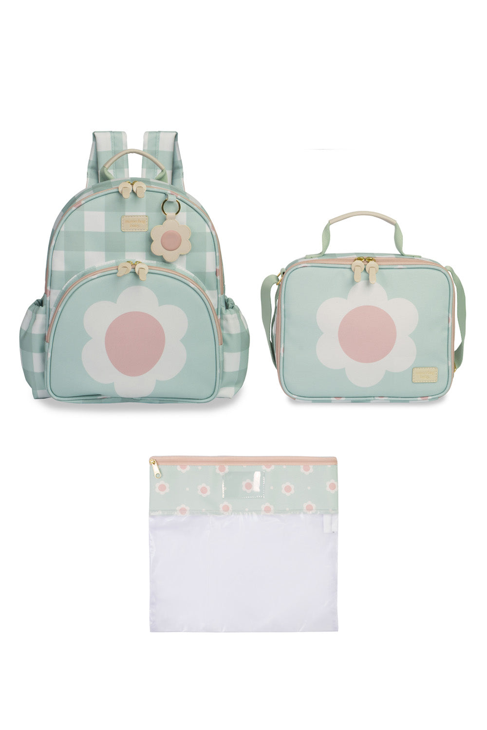 KIT MOCHILA + LANCHEIRA + SAQUINHO ORGANIZADOR KIDS MARGARIDA - MENTA