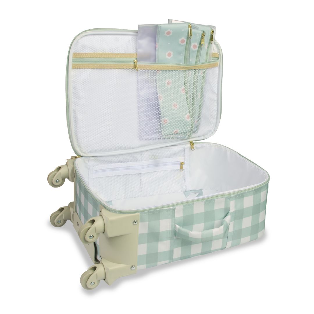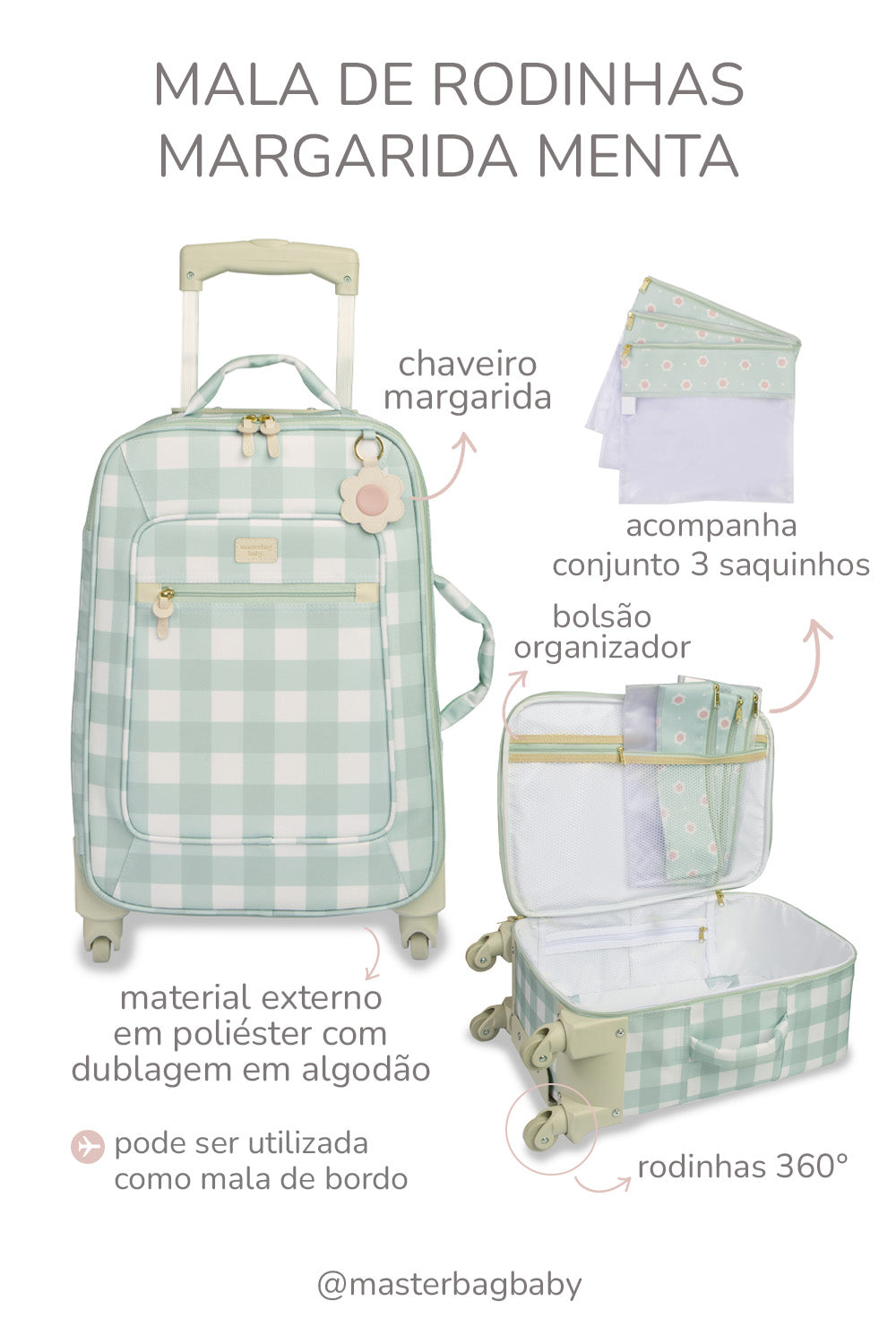 A Mala de Rodinhas Margarida Menta é aquele carinho em forma de bagagem que toda mamãe sonha em ter. Com um tom delicado e um design pensado com amor, ela é perfeita para acompanhar o dia tão esperado da maternidade e todos os momentos especiais em família.
