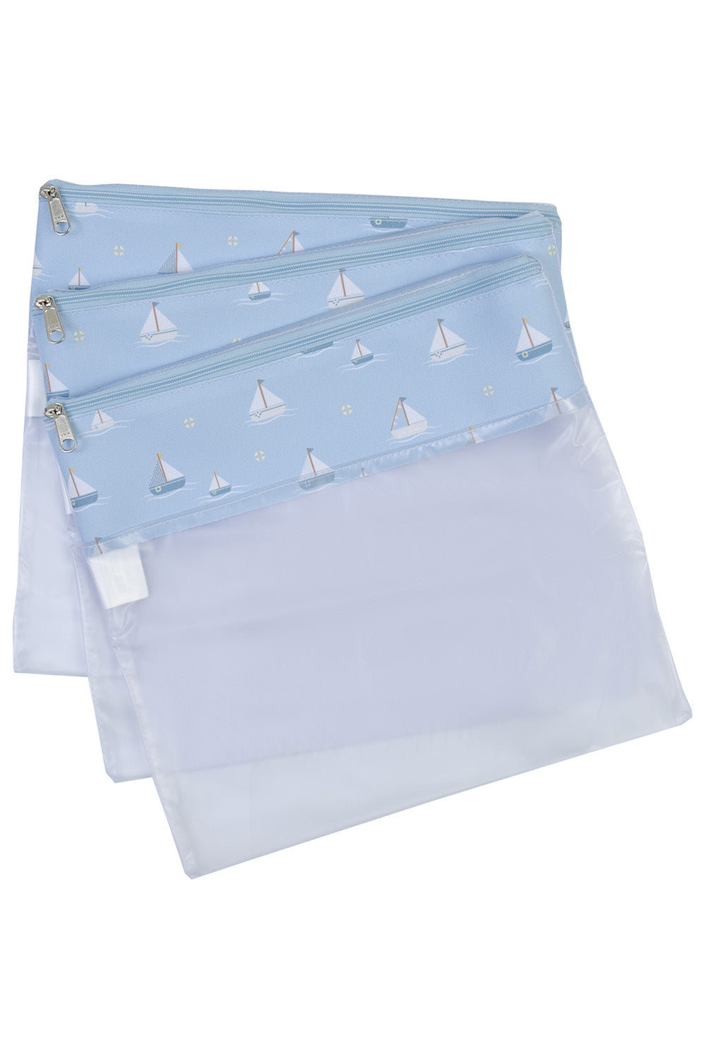 Acompanha 3 saquinhos organizadores estampados no tema barquinhos
