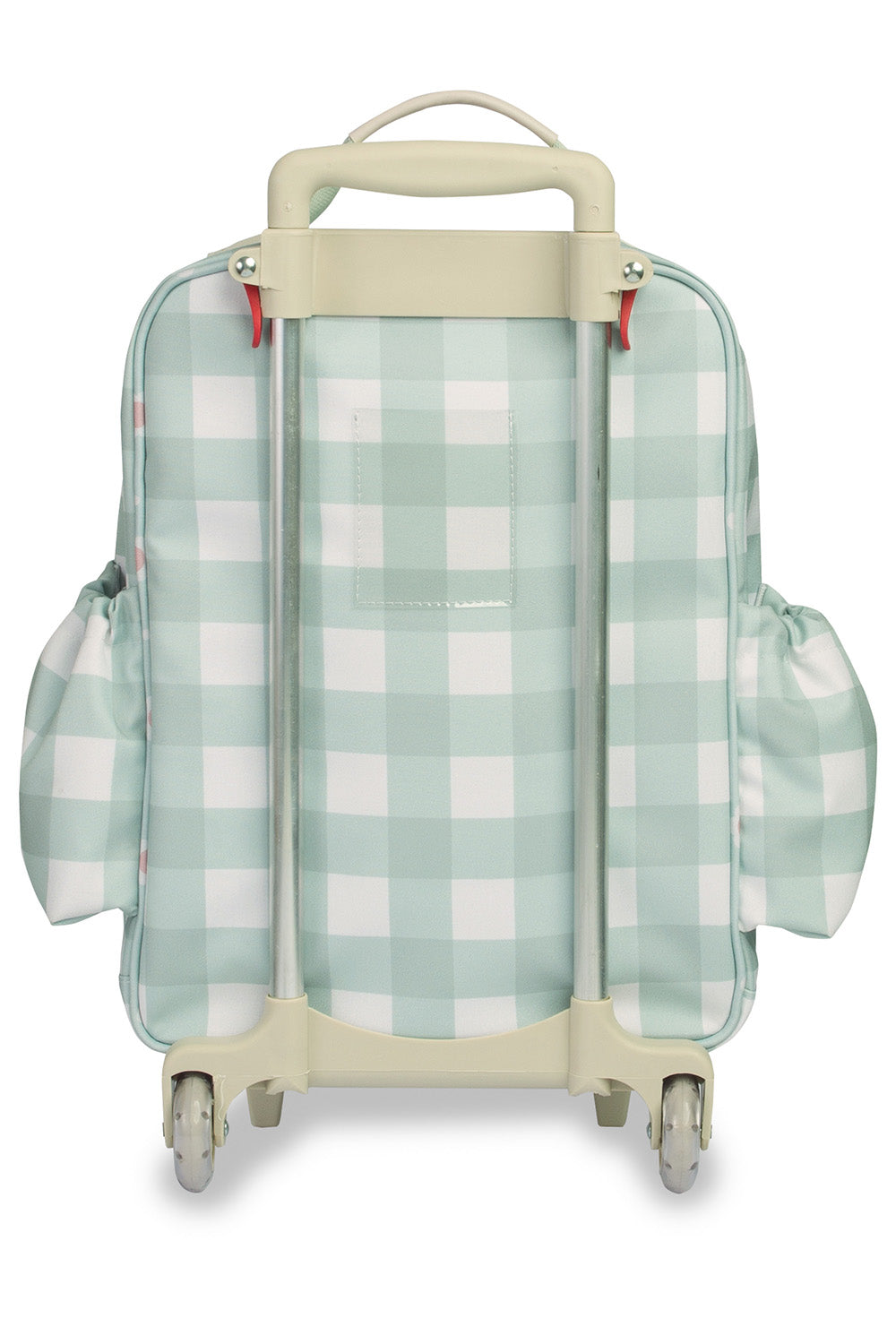 A Mochila de Rodinhas da Coleção Margaridas Menta é a escolha perfeita para pequenas! Com um design ajustável que se adapta ao tamanho da criança, ela facilita o transporte, tornando o dia a dia na escola e as viagens muito mais leves. Seu espaço é amplo, permitindo uma ótima organização. Possui dois bolsos laterais para garrafinhas e vem com um chaveiro de margaridinha. Sua pequena vai adorar ir para escola ou viajar com essa mochila!