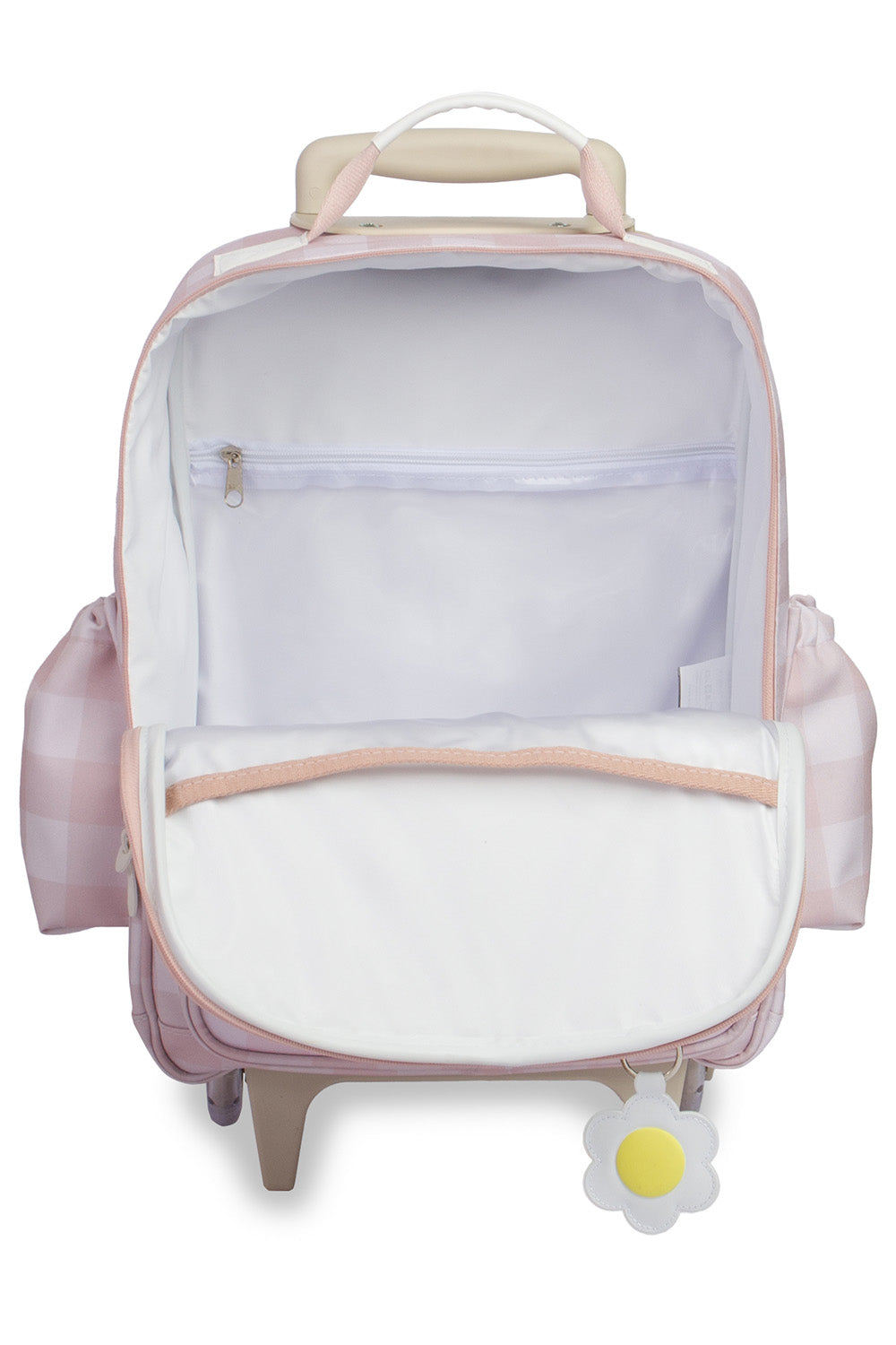 A Mochila de Rodinhas Margaridas Rosa é delicada e combina a estampa de margaridas com o clássico xadrez, trazendo um toque de estilo para muitas aventuras da sua pequena. Suas alças se adaptam ao tamanho da criança, tornando o dia a dia na escola e os passeios muito mais tranquilos e divertidos. Seu interior amplo permite ótima organização, enquanto os bolsos laterais são ideais para garrafinhas. É a escolha perfeita para meninas sonhadoras!