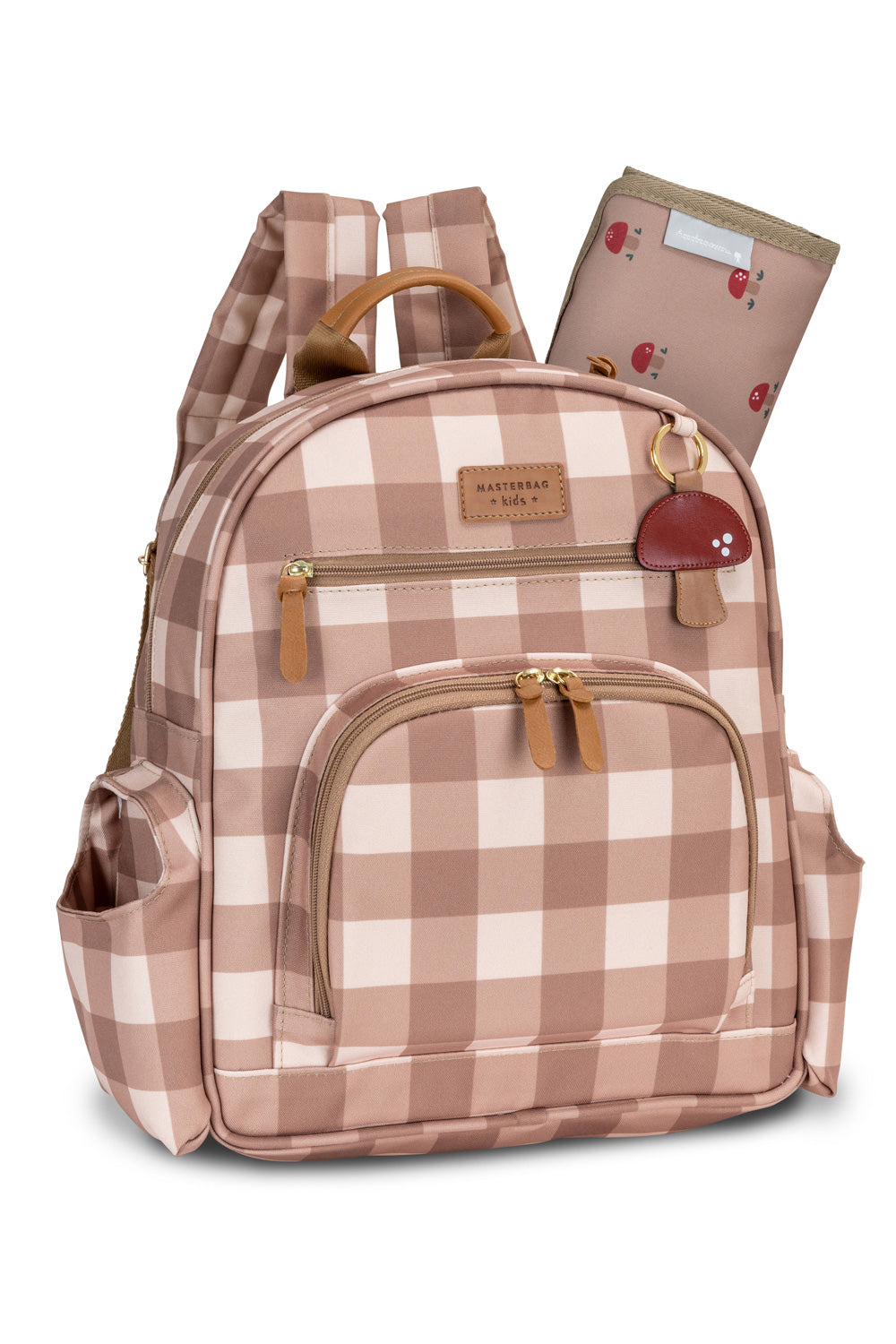 Mãos livres e muito estilo! A Mochila Noah Cogumelos é um item indispensável no enxoval do seu bebê. Internamente ela possui quatro bolsos para organizar os acessórios do seu pequeno. Na parte externa possui dois bolsos laterais para garrafinhas e dois bolsos frontais, um deles chamado "Mommy Pocket" para os itens da mamãe. Acompanha trocador e chaveiro no tema cogumelos.