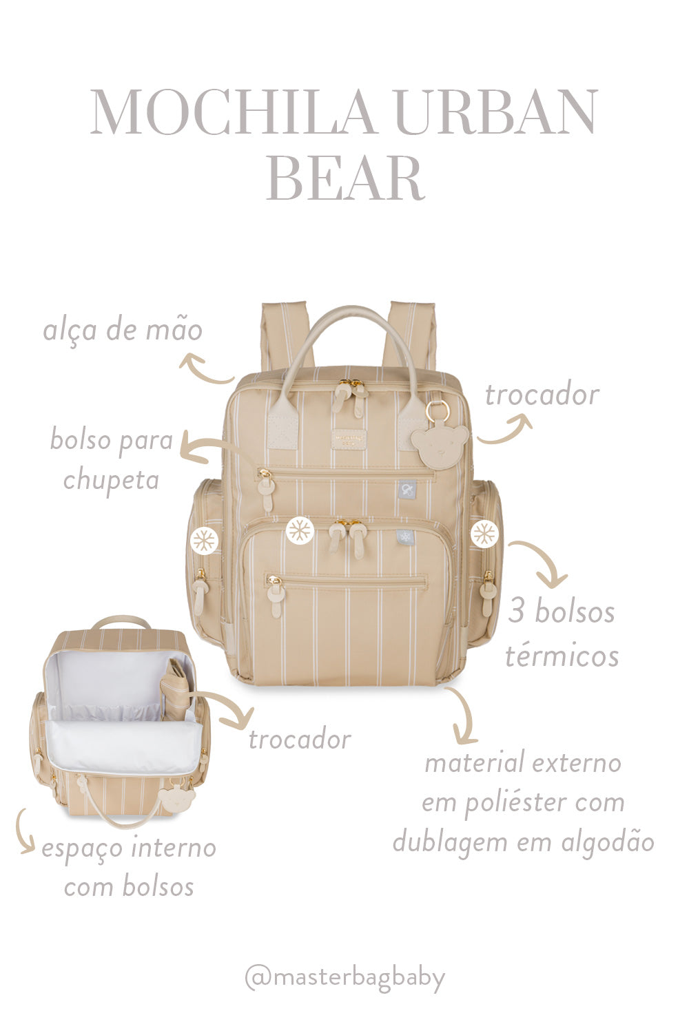 A Mochila Urban Bear Masterbag Baby é a escolha ideal para quem busca praticidade e muito espaço. Ela é perfeita para diferentes passeios com o (seu) bebê, oferecendo organização e conforto em todos os momentos.